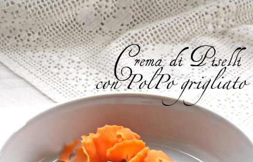 Crema di piselli e alga spirulina con polpo grigliato e pane croccante. Non fateli i figli. Non fateli che poi vi vengono le occhiaie, le rughe, le smagliature, le bolle di sapone nella borsa, le figurine nei taschini delle camicie e le costruzioni nel letto. Non fateli che poi vi v [...]