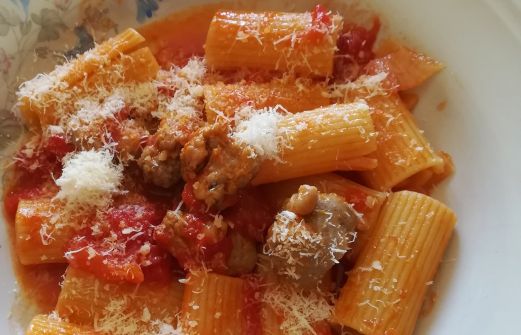 Ingredienti per 4: 400 g di rigatoni, 2 barattoli di pomodoro pelato,1 cipolla, 400 g. di salsiccia, peperoncino, 1 limone, pecorino romano, olio, sale e zucchero q.b.. Preparazione: In un tegame coperchiato fare appassire la cipolla tagliata finemente in olio evo. Privare la salsiccia del bude [...]