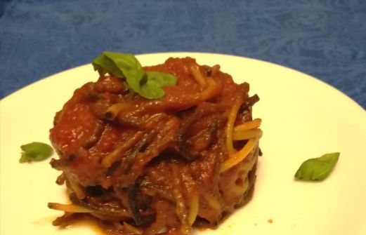 Ingredienti per 2 persone: 180 g. di spaghetti di media grossezza, 200 g. di passata di pomodoro, 1/2 cucchiaio di concentrato di pomodoro olio, aglio, zucchero, sale, peperoncino. Preparazione: Porta ad ebollizione 150 g. di passata e il concentrato, con aggiunta di acqua in modo da cr [...]