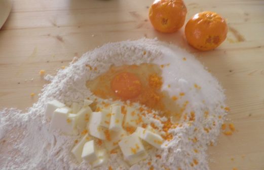 Questi biscottini sono così buoni che non non ho avuto neanche il tempo di fare una bella foto: volati via in men che non si dica! Ingredienti: per la pasta frolla - 250 g di farina, 100 g di burro, 70 g di zucchero, 1\2 bustina di lievito, 1 uovo, la buccia grattugiata di due mandarini, un piz [...]